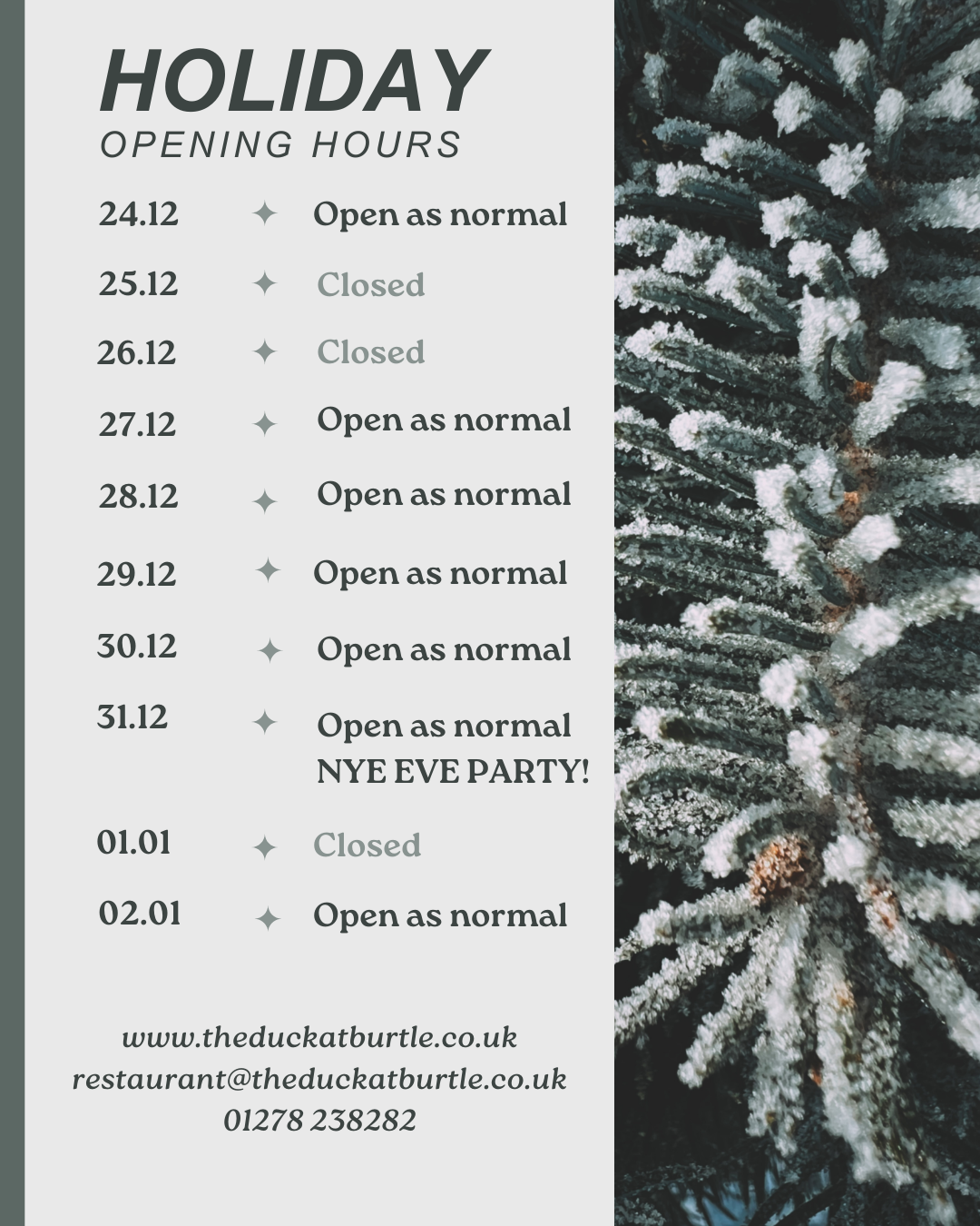 Served from Monday 24th November 2025 through to Saturday 3rd January 2026